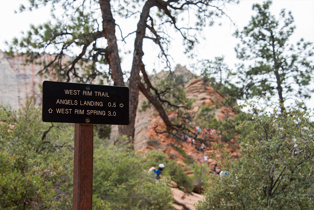 1 mile walk via Riverside Walk from the Temple of Sinawava to get to the Narrows