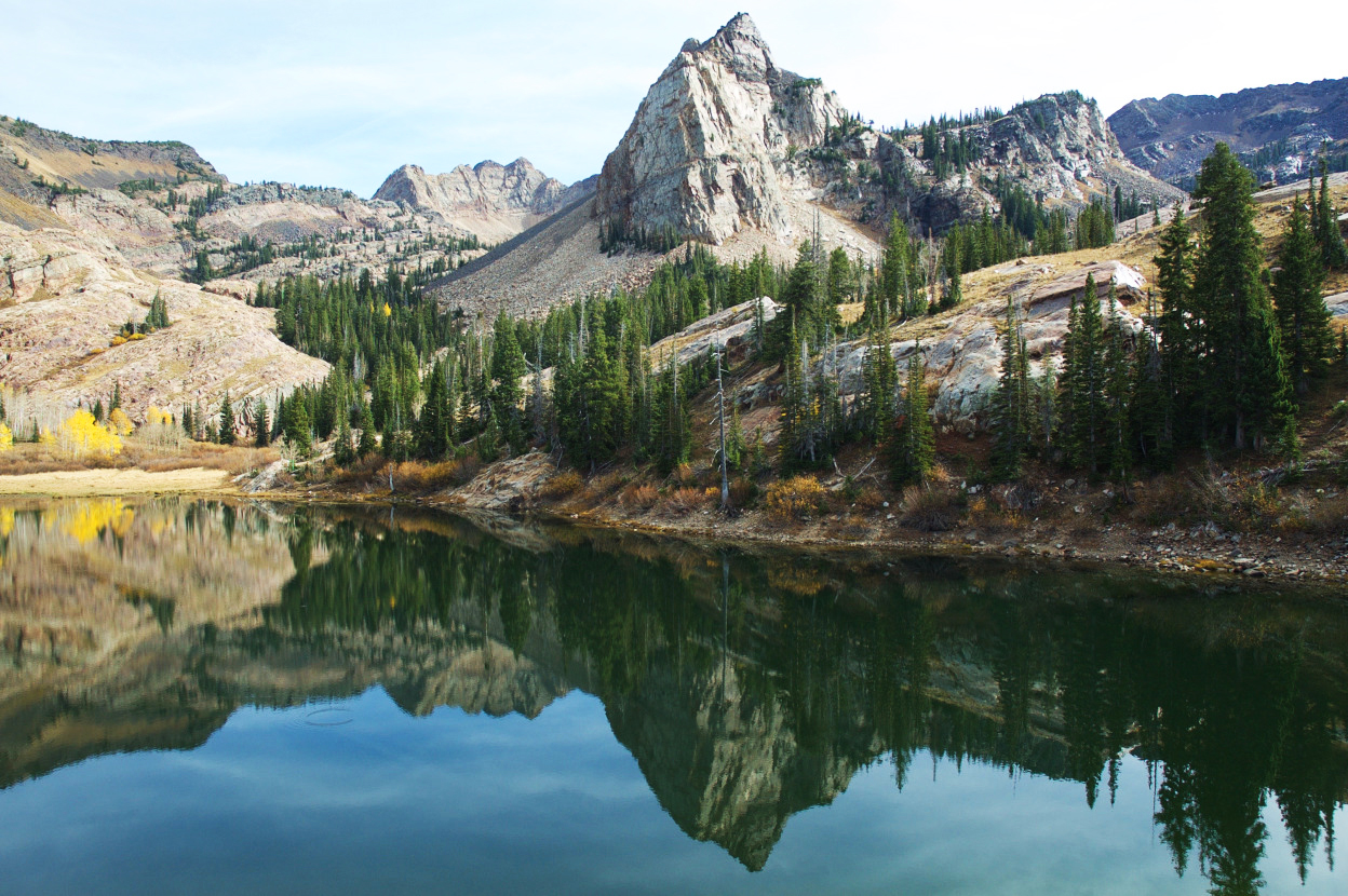 The valley opens up and you can see all the way up to the Sundial, which overlooks the lake and seems to be the most iconic part of the Lake Blanche experience. Because I hiked this in the fall the leaves on the trees were dead with little color besides brown, but as we made it up higher, the colors started to appear on the trees above and the temperature cooled off a bit.