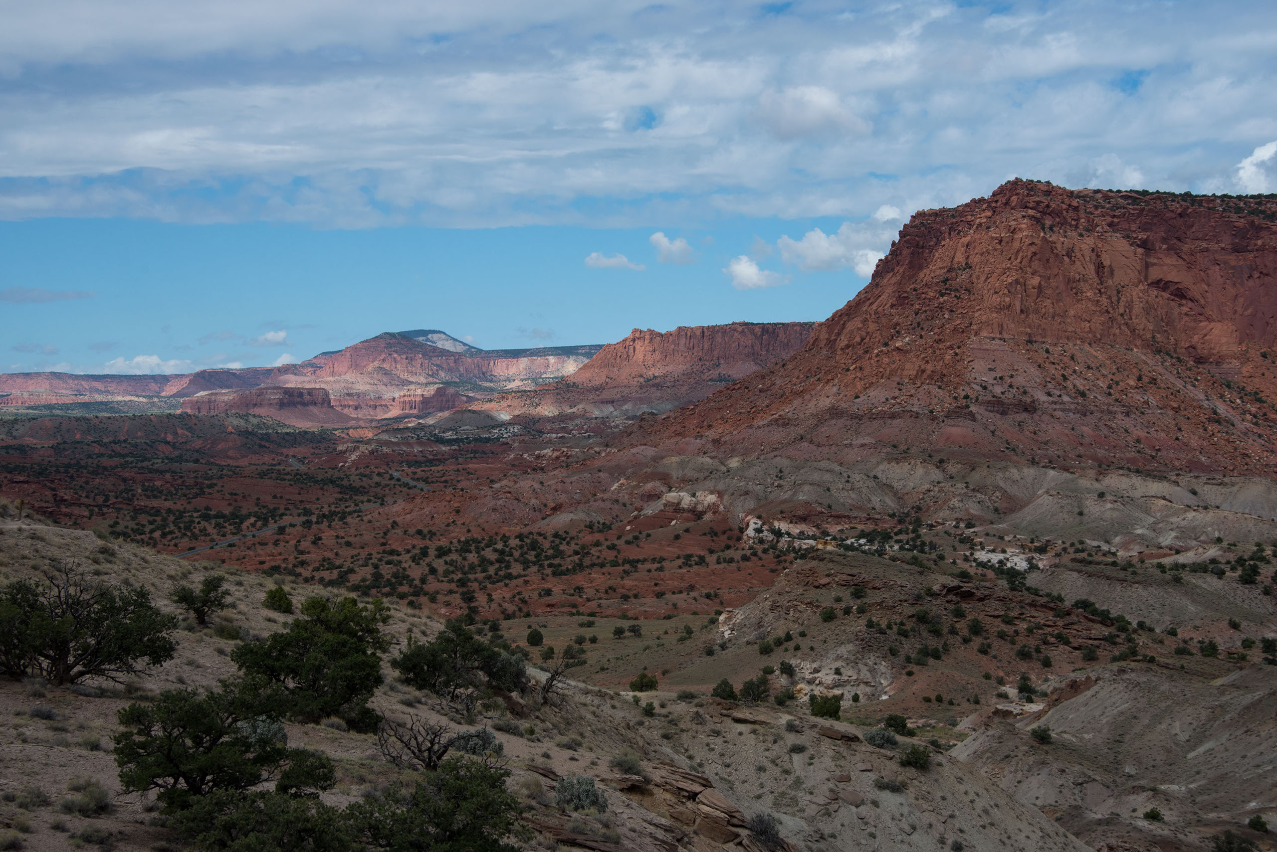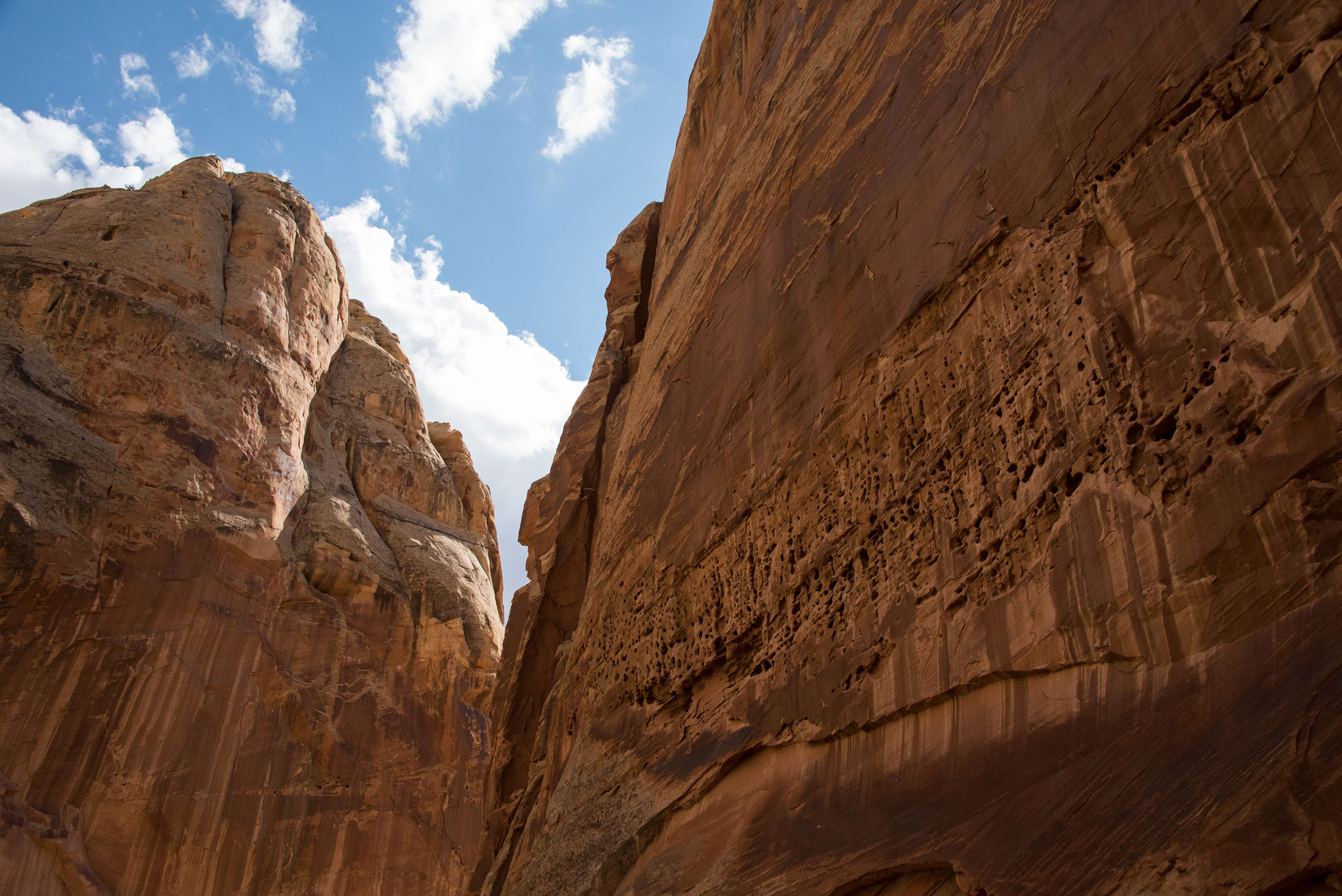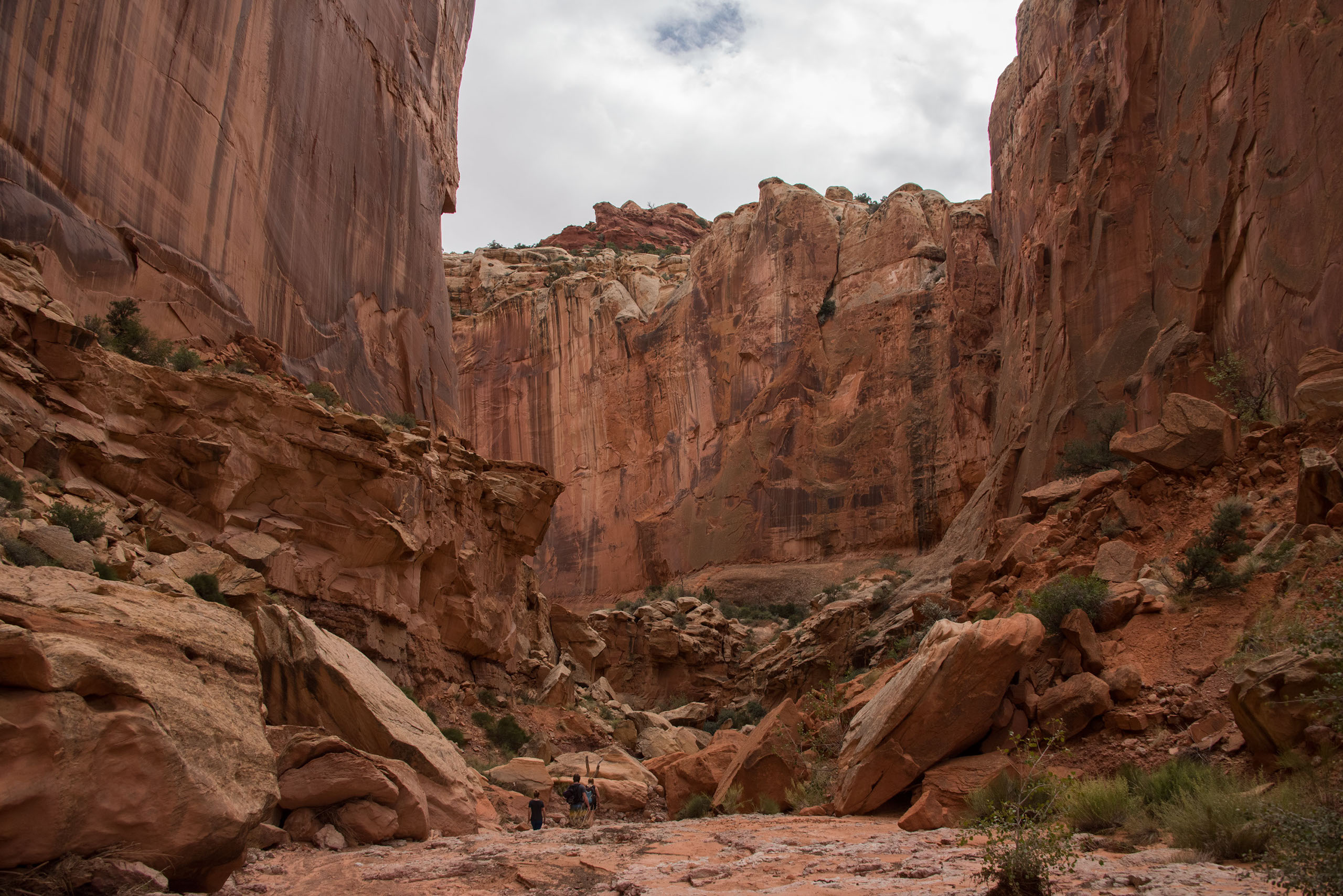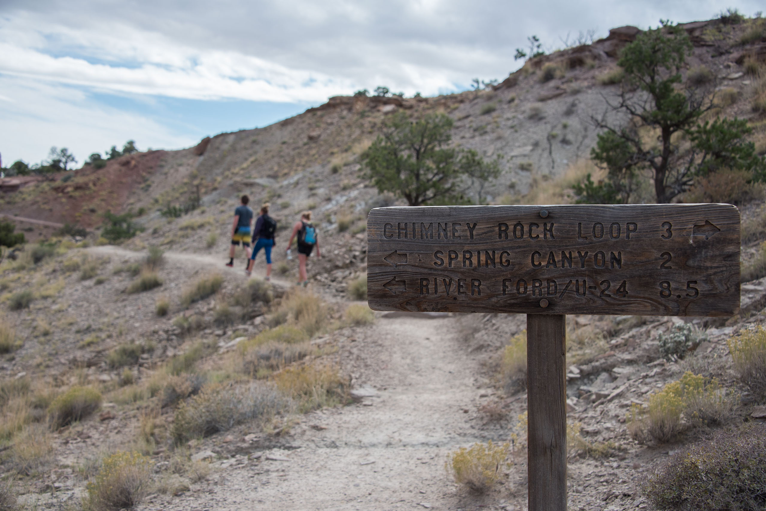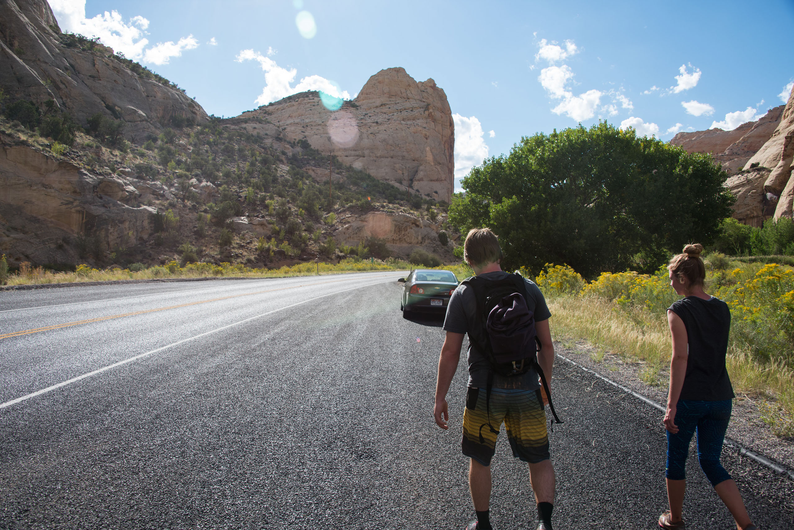 The most effective way to complete this hike would be to take two cars, so you can hike straight through the lower portion of the canyon. Once you’re in Capitol Reef National Park, pass the Chimney Rock trailhead, and drive to mile marker 83 and park in the pull off area. This is where you will end the hike. Once your group is all in the same car, drive back up the road to the Chimney Rock trailhead. This is where you will start your hike. Follow the signs to ensure you are making your way to Spring Canyon.